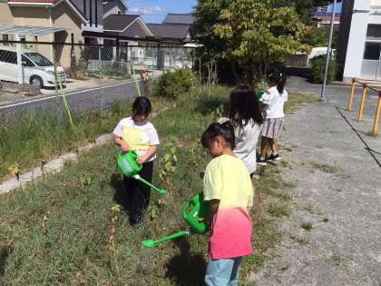 ふぁみりぃに来ている子たちと水やりをしています。ありがとう!