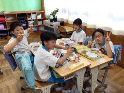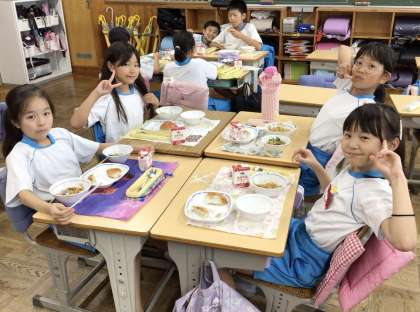 この日は、焼きそばや米粉パン、ぎょうざなど子どもたちの大好きなメニューばかりで大盛り上がりでした。