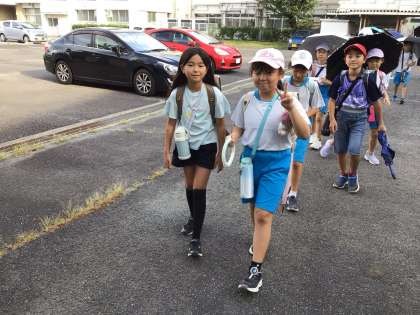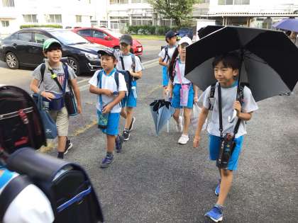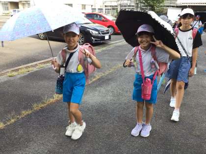 暑さ対策として日傘を利用しています。毎日元気よく帰っていきます。