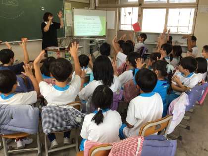 3年生は福祉実践教室で、点字に続いて手話にも挑戦しました。「見えない障害」である聴覚障害の難しさについて教えていただきました。