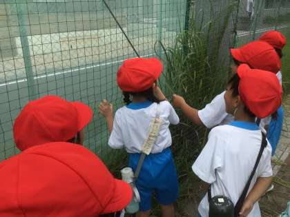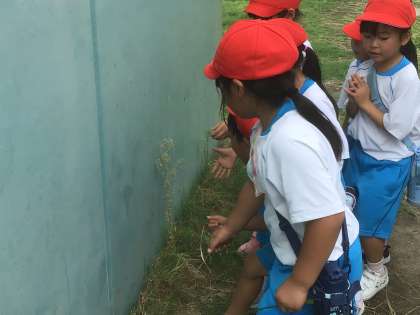 体育の帰りに、芝生の上を歩いていると、ぴょんぴょんと虫たちが飛び跳ねました。それを見て、すぐに虫とりが始まりました!