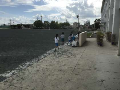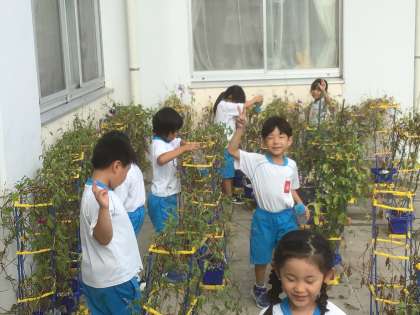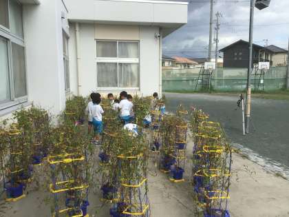 あさがおのお世話をして、週末を迎える準備です。まだまだお花が咲いていますよ。