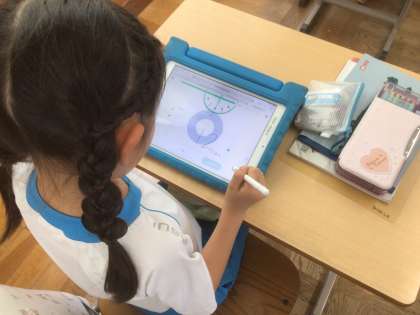 たくさんの問題に挑戦しました。学習用タブレットでキュビナを使って、計算をしました。