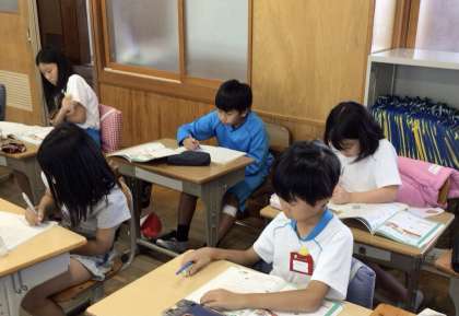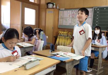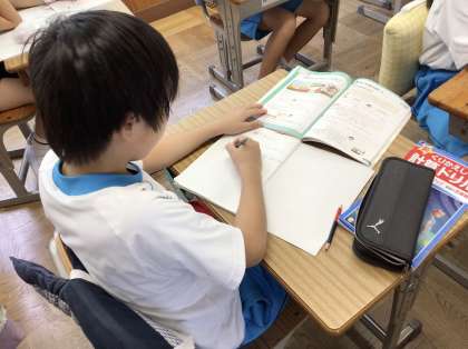 2組の授業です。式と計算の順じょを学習しています。いくつかの式を1つにまとめてかいて答えを求めました。( )がある式では、( )の中をひとまとまりとみて、さきに計算することが分かりました。