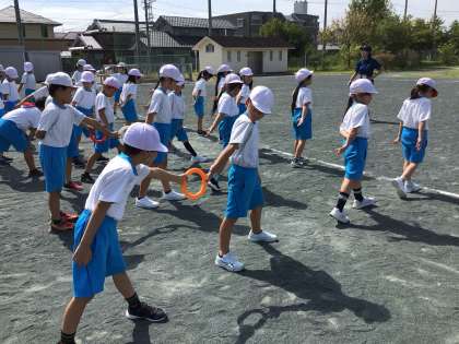 リングバトンを渡す練習をしました。