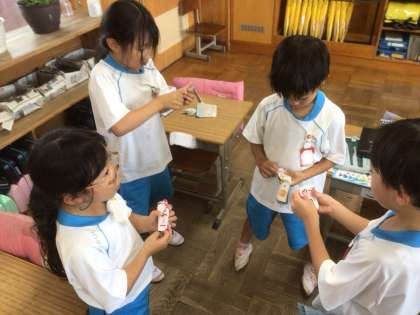 グループの子と、計算カードの練習です。カードのめくり方にもコツがある様です。
