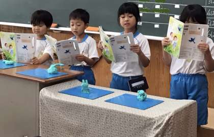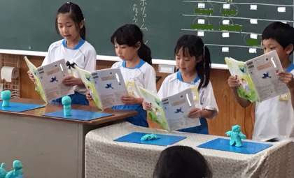 音読発表会をしました。役になりきれるように、粘土で担当する人物の像を作ってからグループ練習をし、発表しました。おうちでの音読練習や学級での学習が生かして、素敵な読み方をする子が増えました。これからも、音読練習をがんばっていきましょうね。