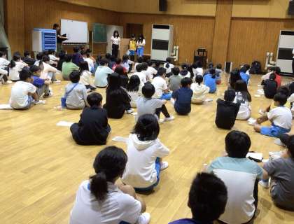 2日目の朝です。 朝の集いを行いました。 時間を守って集合でき、立派です。