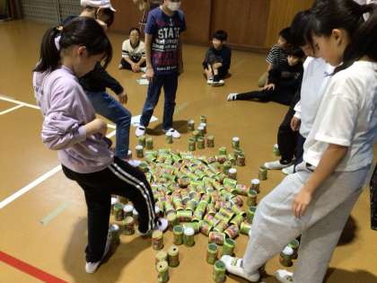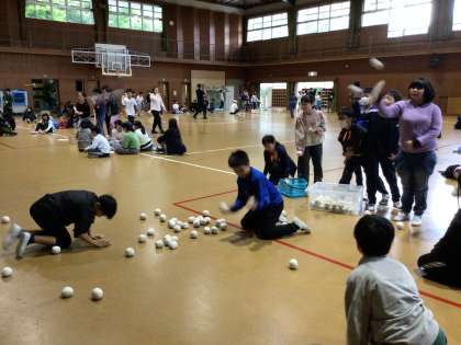 ちびっ子ギネスです。 高く積んだり、玉を投げたり、全力です。