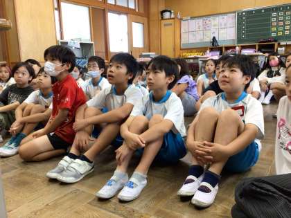 2組の様子です。毎回とても楽しみにしている読み聞かせです。聞き入っていました。