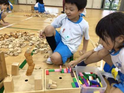 間伐材の木の匂いに癒されながら、楽しい町がどんどん出来上がってきました。