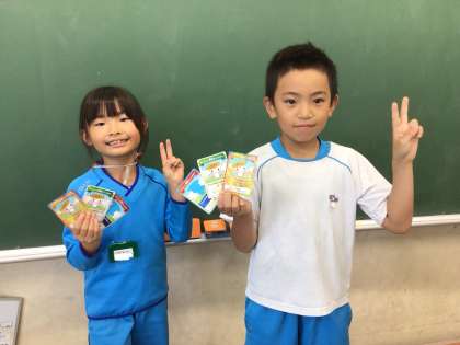 保健委員会の6年生が朝食の大切さを教えてくれました。そのことを、家族や友達に伝える手紙を書き、その返事を相手からもらいました。6年生の話を聞く、手紙を書く、返事をもらう、それぞれできるとカードがもらえて、返事をもらった人はキラキラの「きらちゃん健康アンバサダーカード」をもらいました。