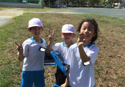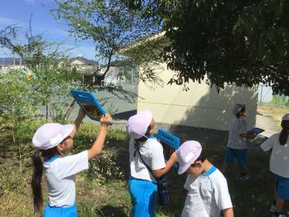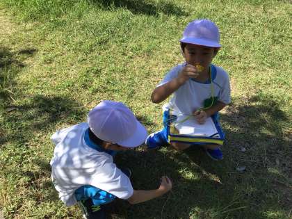 生活科で秋見つけをしました。「どんぐりを見つけたよ!」「イチョウの色が黄色に変わってきてるよ」など、様々な秋を見つけました。