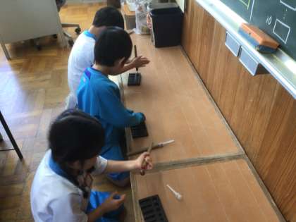 どんぐりごま作りをしました。自分のとっておきのどんぐりに、きりで穴をあけました。