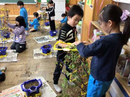 「うんとこしょ、どっこいしょ。まだまだつるは取れません」と、国語で学んだ「大きなかぶ」のパロディをしながら作業している子もいましたよ。