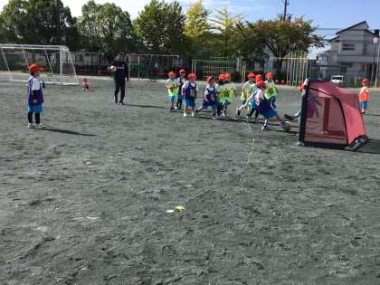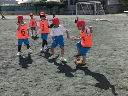 グランパスのコーチから、ボール蹴りゲームの楽しさを教えていただきました。