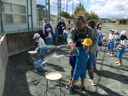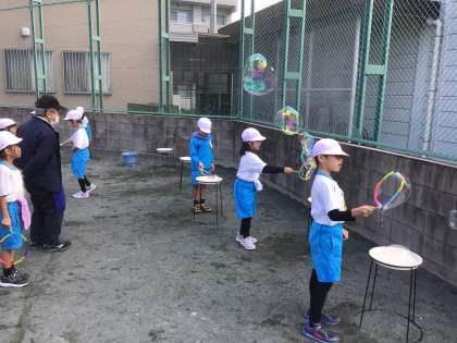 風が吹くと 長ーいシャボン玉が!
