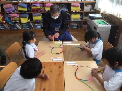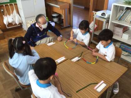 今日は、シャボン玉の日。まずはみんなで、道具作りです。サポーターの先生に教えていただき、みんな完成です!
