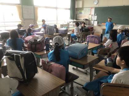 係からの連絡です。 話している人の方を向いて聞いている姿がすてきですね。