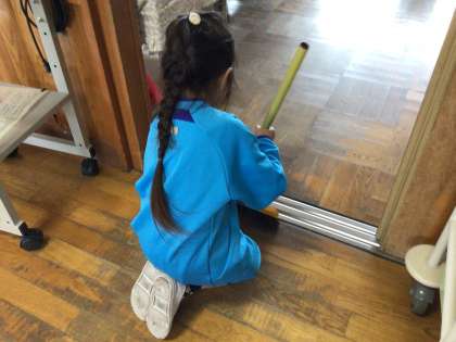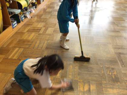 今日は、いつもお手伝いに来てくれる6年生が校外学習だったので、1年生だけで掃除をしました。今まで教えてもらったことを思い出しながら、自分たちだけで掃除をすることができました。「できるよ!」と得意気にしていました。すっかり小学生らしく成長しています。