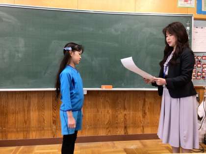 夏休みに取り組んだ節水の量がとても多かったので、教室にて校長先生より賞状をいただきました。