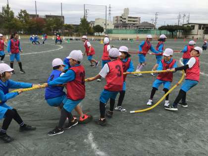 今日の1時間目にスポーツフェスタ4年生練習を行いました。綱取りの練習を行いました。