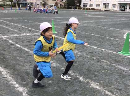 学級対抗リレーの練習も行いました。1組が優勝しました。