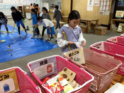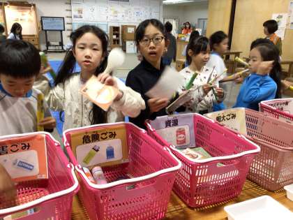 ゴミの分別の様子です。一生懸命に考えて分別しています。