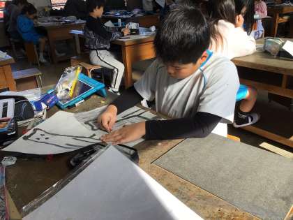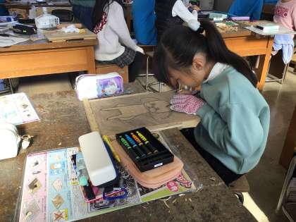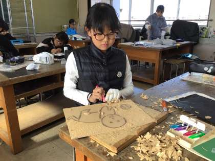好きな動物の作品を真剣な表情で作っています。