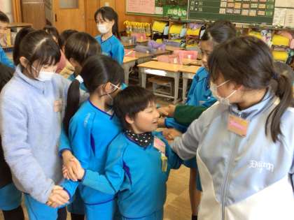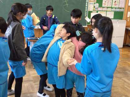 今日のわくわく活動。13班では、「人間知恵の輪」を楽しみました。解いている途中でクイズを挟むというものでした。6年生のアイデア、すごいですね。ありがとうございました。