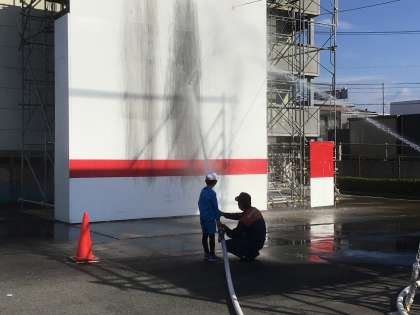 放水体験をしました! 結構重たい!