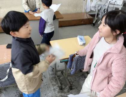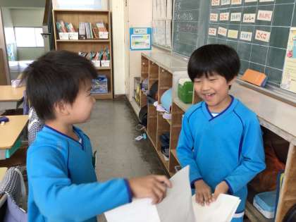 動物のすごいところについて本で調べ、クイズを作りました。楽しくクイズを出し合いながら、動物の秘密をたくさん知っていきました。