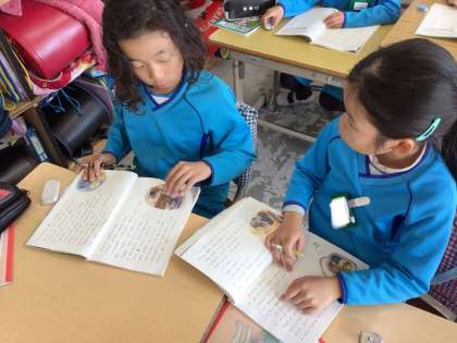 かさこじぞうのお話を場面分けをする様子です。「場面が変わるのは、時•人物•場所が変わるときだから…」と、場面が変わる文章を見つけながら取り組みました。