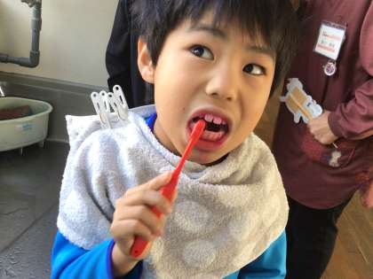 前歯の上下4本ずつ染め出しをして、歯ブラシできれいに磨きました。