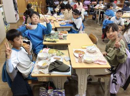 この日のメニューは、ツイストパン、マカロニのクリーム煮、ウインナー、サワーキャベツ、コーヒー牛乳のもと、牛乳でした。
