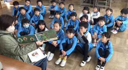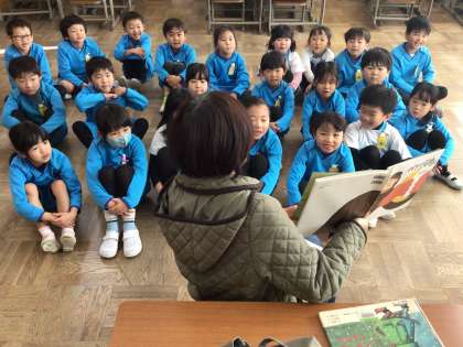 ボランティアの方が読み聞かせをしてくださいました。「しんせつなともだち」で、心がほっこりとなりました。「バナナじけん」は、おもしろくておかしなことの連続でした。「まほうのコップ」では、水の入ったコップが見せてくれる不思議な様子に驚かされました。楽しいひとときを、いつもありがとうございます。