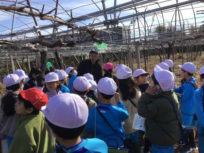 後藤ぶどう園さんです。ぶどうや使う機械について教えていただきました。クイズも楽しかったですね。