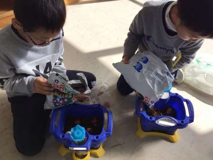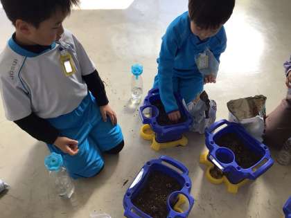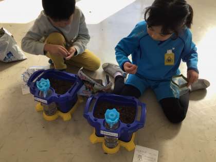 持って来た球根を、わくわくしながら植えました。「とがっている方が上だよ」「家で球根を水につけてから持ってきたよ」と、球根の植え方について事前に確かめていた子がいました。大切に育てて素敵な花を咲かしたいという思いの表れだと感じました。球根の準備や植え方へのアドバイスなど、託さなんのご協力、ありがとうございました。