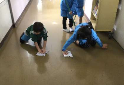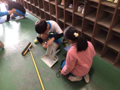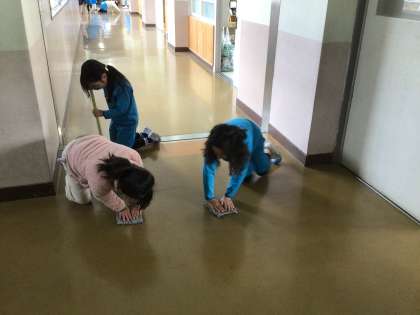隅々まできれいにしています。自分たちで汚れを発見したり、掃除の仕方を工夫したりしています。