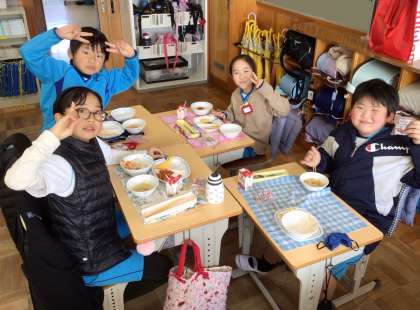 班の友だちと仲良く食べています。