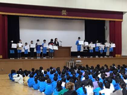 0時間目に体育館で全校集会がありました。最初に表彰があり、4年生も表彰されました。校長先生の話と冬休みに向けての話を聞きました。