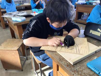 彫刻刀を使う時は特に集中して行っています。
