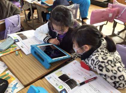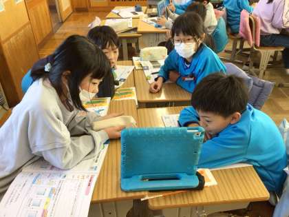 1組の授業です。ものの温度と体積です。実験結果から分かったことをノートにまとめました。まとめたことを班で話し合いました。