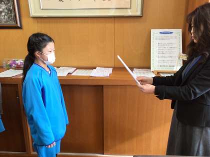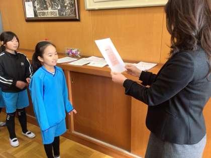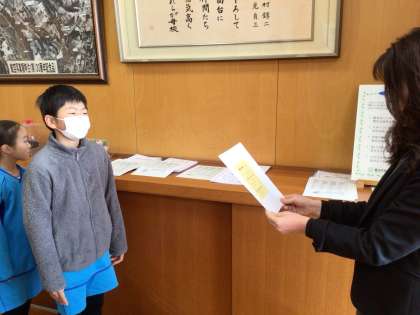 校長室にてかがやき賞をいただきました。