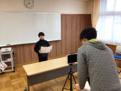 写真は、代表児童が新年の挨拶をしている様子です。