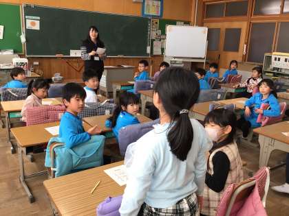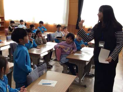 ALTの先生と一緒に、英語に親しみました。今日のテーマは、「数字」。1〜12までの言い方を教えてもらいました。そして、ビンゴ大会。”What number do you like?”と聞かれた子が答えた数字はカードの中にあるかな?あちらこちらから”BINGO!”の声が上がりました。楽しく学ぶことができましたね。