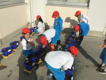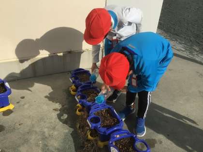 球根のお世話、しっかりできました。「なにかちょっと出てきた!」という声が。何か、って何かな?