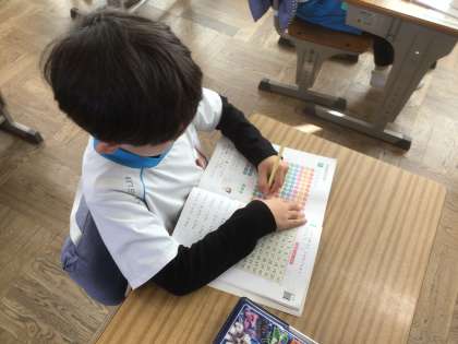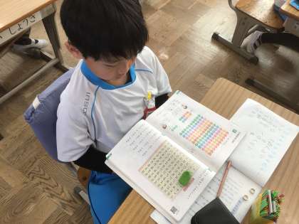 「大きいかず」の学習です。20をこえる数、数えています。数え方は、分かったかな?