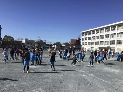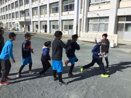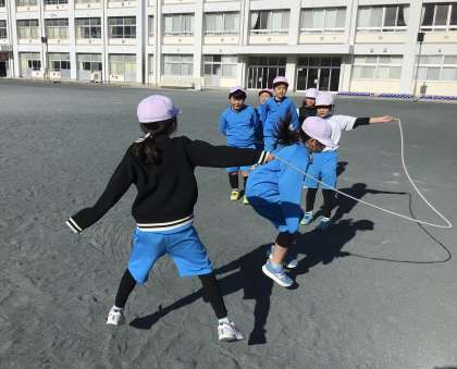 寒さに負けず、たくさんの子たちが運動場で長縄跳びをしました。