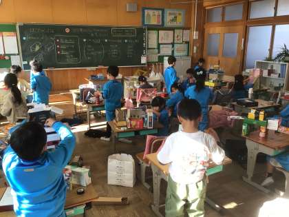 「はこでつくったよ」の学習です。みんなおもいおもいに作っています。